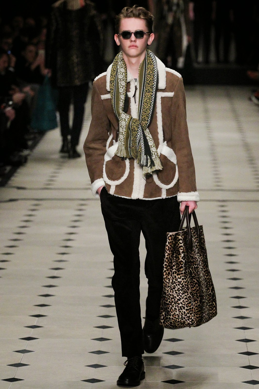 Jackets and scarves and even totes embroidered with Indian mirror details, shirts with intricate paisley and floral prints, shearling lined jackets and fringed blanket shawls paired with tapered trousers, yes that is Christopher Bailey’s ‘Classical Bohemian’ man for Burberry Prorsum Fall 2015.