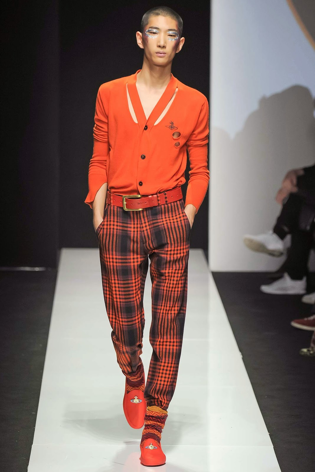 Vibrant with plaids and checks, including British currency prints, the other noteworthy pieces of the offering were sportswear inspired separates, drop crotch pants and deconstructed pieces.(Image Credit:Style.com)